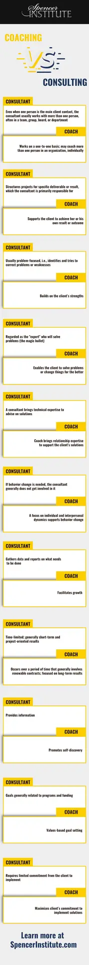 Too often the lines between coaching and consulting get blurred, which can easily create a relationship that is not effective at providing what your client actually needs. Knowing when to employ the services of a professional coach or a consultant can be crucial for the success of your business, either by helping you further develop your leadership skills or by helping you solve a problem head-on.