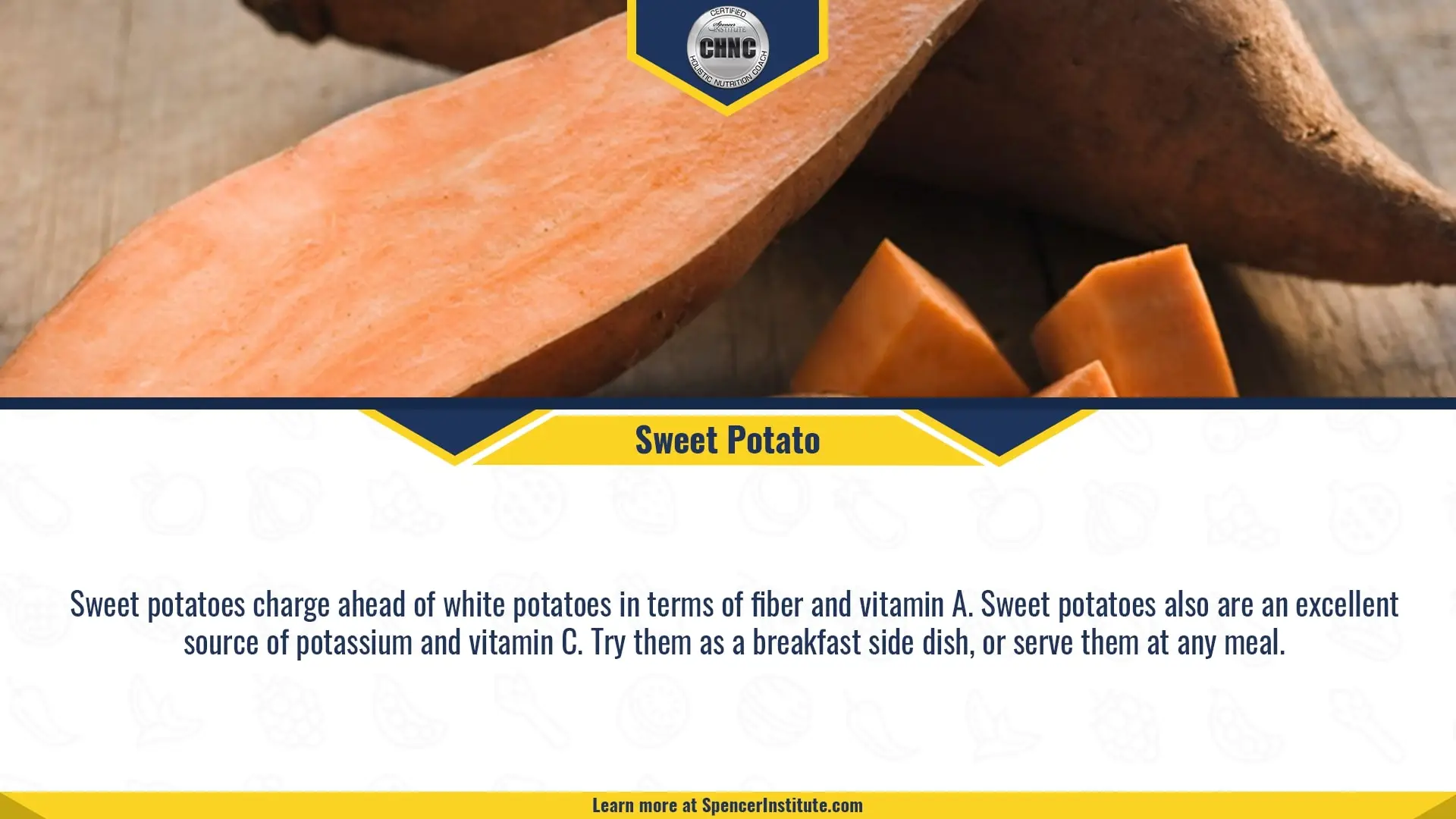Sweet potatoes charge ahead of white potatoes in terms of fiber and vitamin A. Sweet potatoes also are an excellent source of potassium and vitamin C. Try them as a breakfast side dish, or serve them at any meal.