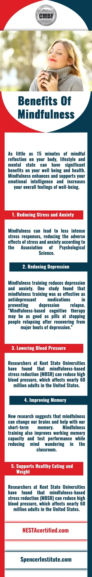 1. Reducing stress and anxiety – Mindfulness can lead to less intense stress responses, reducing the adverse effects of stress and anxiety according to the Association of Psychological Science.